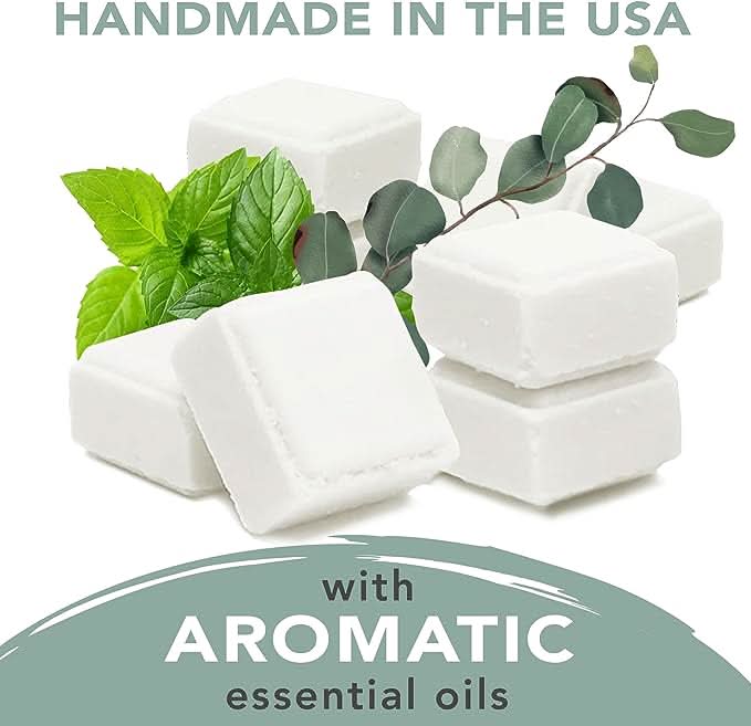 Imprégnées d'un mélange d'ingrédients naturels et d'huiles essentielles, ces pastilles de douche luxueuses revitalisent le corps et l'esprit. Il suffit de placer la pastille végétale au fond de votre douche, d'ouvrir l'eau et de vous laisser transporter par les arômes vivifiants d'eucalyptus et de menthe. Un véritable moment de détente digne d'un spa à chaque douche. Ce mélange est très apprécié des personnes souffrant d'allergies, d'asthme ou de rhumes saisonniers.