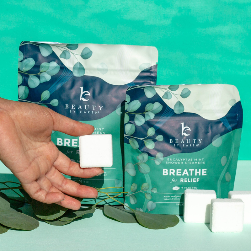 Our Breathe Shower Steamers are filled with natural ingredients that are perfect for helping with symptoms of congestion. Eucalyptus and Mint help open air ways, loosen phlegm, and fill your mind and body with a feeling of peace and relaxation. Commonly, eucalyptus steam is used to help treat bronchitis, coughs, and the flu. These steamers are perfect for anyone feeling sick or needing a boost of vitality in the morning.