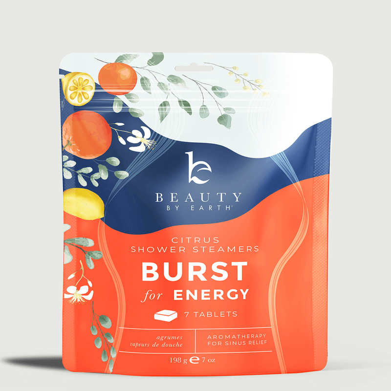 BURST: Revitalizing Citrus Benefits: Wake up and get ready for the day with the energizing bust of citrus! Our blend of citrus essential oils give your shower steam the aroma of success, power suits, and boosted stamina. Go ahead and give yourself a +10 for mental acuity. It's like coffee for your mind, body, & mood (but without the side effects).